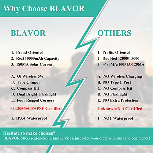 - Friendly Reminder on Solar:kindly know that solar charging is an additional feature, Taken the small panel size, large capacity and uncontrollable sunlight intensity into consideration, the solar charging option works as a backup solution while other sources of power is unavailable. Make sure the power bank is fully charged before your trips.