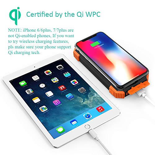 - Qi Wireless & Solar Power:10,000mAh wireless power bank with solar. Not just wireless power bank but wireless charger as well compatible with iPhone XR/XR MAX/XS/X/8/8plus, Samsung Galaxy S9/S9plus/S8/S8plus and all qi-enabled mobile devices.