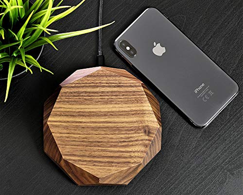 This gorgeously unique wireless charging station will work with any QI-enabled device to give you a convenient and quick recharge. Leave your phone to rest on this solid wood charger without worrying about overheating, too. It's a beautiful hardwood piece for your desk even when not in use. Each station is handcrafted from gorgeous natural wood, then hand-finished with eco-friendly polishes to ensure the full beauty of the grain can be appreciated. The modern geometric shaping combines with the classic look of the wood to create this stylish accessory. A premium nylon braided cord is included.